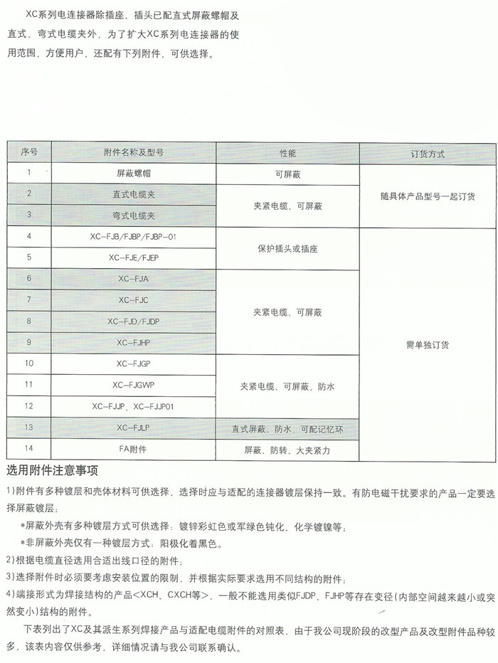 XC及派生系列电连接器附件