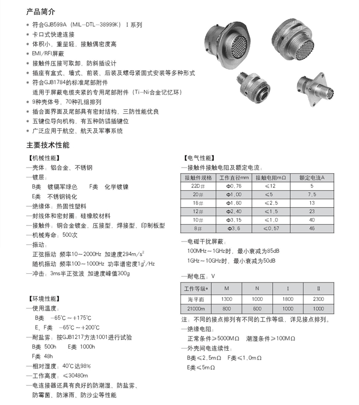 MIL-DTL-38999 I 系列电连接器